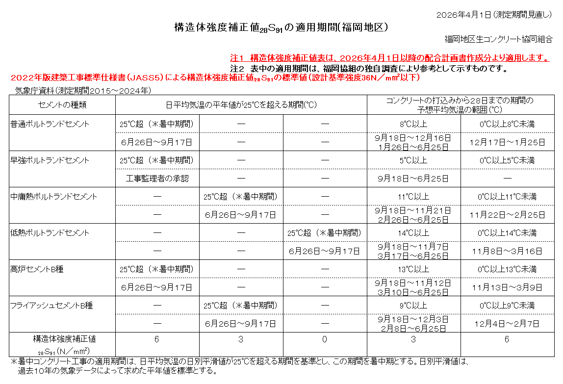 構造体強度補正値28S91の適用期間(福岡地区)